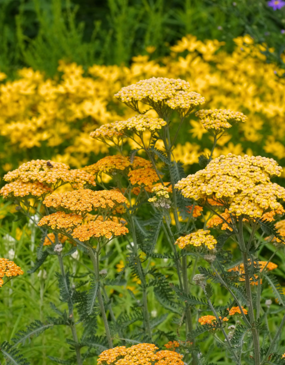 Cette achillée est également très prisée pour les bouquets frais ou secs, conservant longtemps ses teintes chaudes une fois séchée. Son port buissonnant et sa croissance rapide en font une plante idéale pour structurer les bordures et les rocailles.