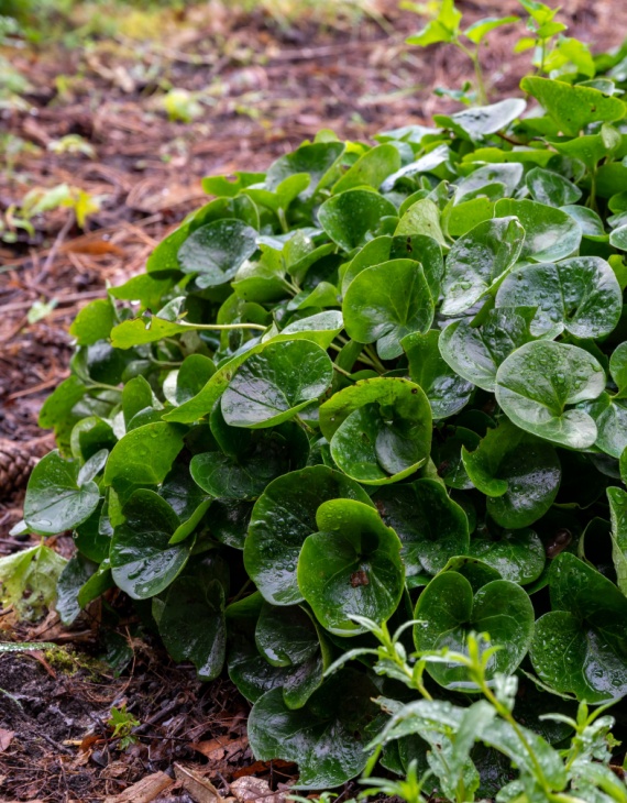 Asarum europaeum, aussi appelé asaret d’Europe, est une vivace tapissante idéale pour les sous-bois et les jardins ombragés. Son feuillage luisant, arrondi et d’un vert profond crée un tapis dense et élégant qui reste décoratif toute l’année. En plus de son attrait ornemental, ses feuilles dégagent une légère odeur épicée lorsqu’on les froisse.