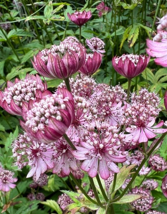 Astrantia ‘Rubra’ atteint 60 à 80 cm de hauteur pour 40 à 50 cm de largeur. Elle se plaît en bordure, en massif ou en potée fraîche, et se combine bien avec les digitales, campanules, heuchères ou géraniums vivaces. Elle est parfaite pour les bouquets d’été, qu’ils soient frais ou secs.