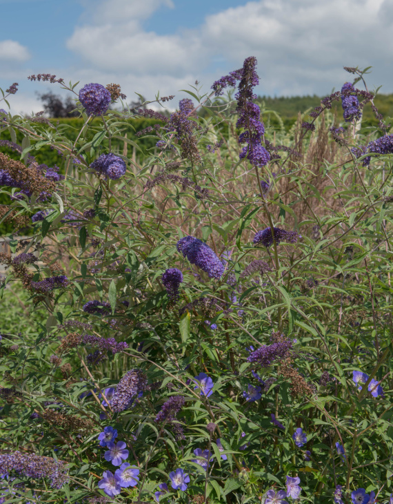 Grâce à sa taille plus modérée et à son allure raffinée, le Buddleia ‘Nanho Blue’ s’intègre facilement dans les jardins modernes, méditerranéens ou champêtres. Vous pouvez l’utiliser pour créer des haies basses, structurer des massifs ou apporter une touche de couleur en isolé.