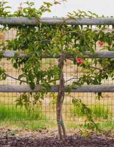 Plantez au printemps ou à l’automne dans un sol ameubli. Prévoyez un support solide, surtout les premières années.