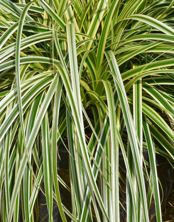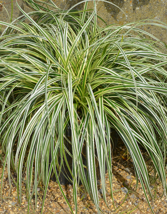 Carex oshimensis ‘Feather Falls’, également appelée laîche d’Oshima panachée, est une graminée vivace ornementale prisée pour son feuillage dense et élégant. Originaire du Japon, cette variété se distingue par ses longues feuilles vertes bordées d’un blanc crème éclatant, qui apportent luminosité et structure aux jardins ou aux compositions en pots. Très rustique et facile à cultiver, elle s’intègre harmonieusement dans les massifs, les bordures ou les jardins modernes.
