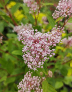De juin à septembre, ce ceanothus se couvre de fleurs roses pâles regroupées en épis légers, contrastant joliment avec son feuillage vert clair, parfois teinté de bronze. Mellifère, cette floraison attire les abeilles et les papillons, favorisant la biodiversité au jardin. En automne, ses feuilles prennent de belles teintes dorées avant de tomber.