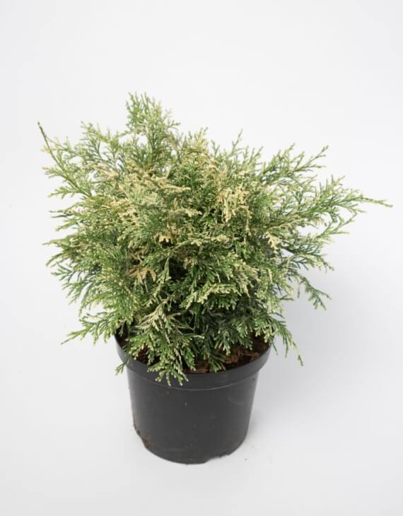 Connu également sous le nom de faux cyprès ou cyprès de Lawson panaché, le Chamaecyparis lawsoniana Pearly Swirls est un conifère nain remarquable par son feuillage dense, spiralé et délicatement panaché de blanc crème. Ce cultivar unique attire immédiatement le regard avec ses teintes argentées et son port compact, idéal pour structurer les petits jardins, les rocailles ou les compositions en pot sur balcon. Originaire des forêts humides du nord-ouest des États-Unis, cette variété a été sélectionnée pour sa croissance lente, son aspect décoratif toute l’année et sa rusticité.