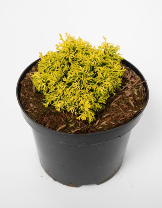 Le Chamaecyparis obtusa Butterball préfère une exposition au soleil ou à mi-ombre, où sa couleur dorée se révèle pleinement. En sol léger à normal, bien drainé et frais, il prospère sans difficulté. Ce conifère rustique résiste bien au froid jusqu’à -20°C et tolère les hivers rigoureux des régions tempérées. Il convient parfaitement aux petits jardins, aux balcons en bac, ou comme accent coloré en massif.