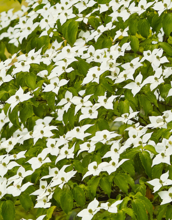 La floraison du Cornus kousa ‘Milky Way’ est particulièrement abondante, recouvrant entièrement l’arbre de grandes bractées blanches dès la fin du printemps, entre mai et juin. Ces « fleurs », élégantes et lumineuses, créent un spectacle qui dure plusieurs semaines. En été, des fruits rouges, semblables à des petites framboises, se développent et attirent oiseaux et pollinisateurs.