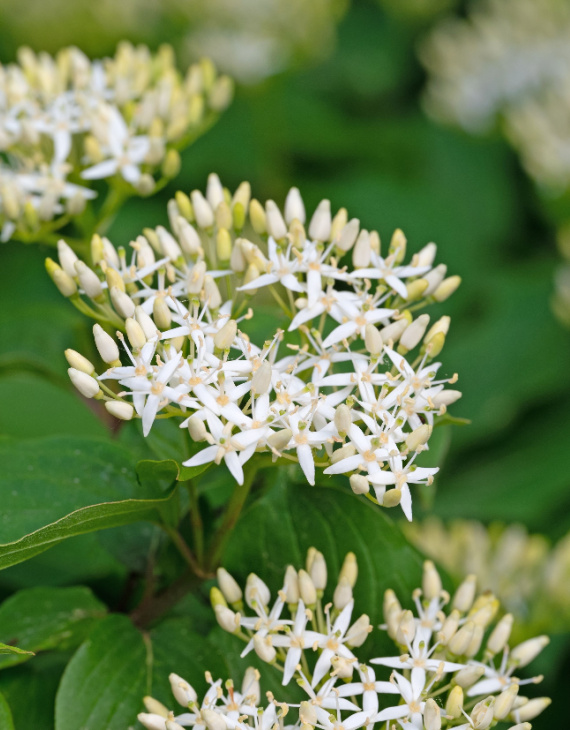 Le Cornus sanguinea, également appelé cornouiller sanguin ou cornouiller femelle, est un arbuste caduc réputé pour ses rameaux rouges ou pourpres qui égayent les jardins en hiver. Son feuillage vert tendre se teinte d’orange, rouge et pourpre à l’automne, offrant un spectacle lumineux avant la chute des feuilles. Les petites fleurs blanches qui apparaissent au printemps se transforment en baies noir bleuté à l’automne, appréciées par les oiseaux.