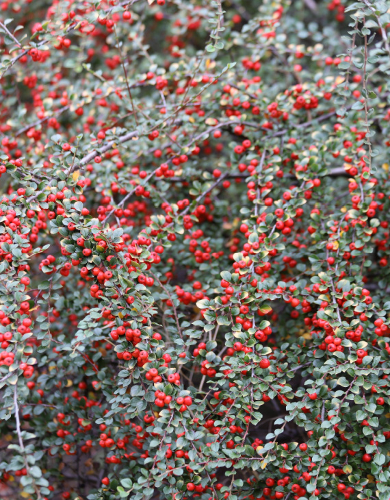 e Cotoneaster horizontalis, ou cotonéaster à branches horizontales, est un arbuste rampant décoratif très prisé pour son port structuré. Ses rameaux disposés en éventail forment une structure géométrique naturelle, élégante en toutes saisons, même après la chute des feuilles.