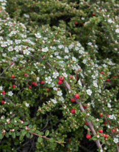 Au printemps, de petites fleurs blanches délicates apparaissent, attirant les insectes pollinisateurs. À l’automne, ces fleurs se transforment en baies rouges vives, très décoratives, qui restent visibles durant l’hiver. Ces fruits ajoutent une touche de couleur et nourrissent les oiseaux.