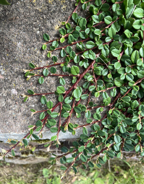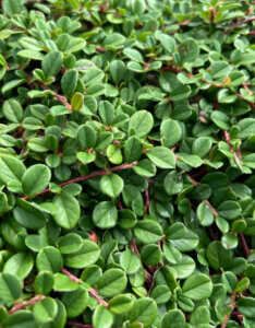 Ses petites feuilles persistantes, d’un vert foncé brillant, apportent une touche fraîche et élégante toute l’année. Au printemps, de discrètes fleurs blanches ou légèrement rosées apparaissent, attirant les pollinisateurs. Ces fleurs se transforment en automne en baies rouge vif, très décoratives, qui ajoutent de la couleur au jardin tout en nourrissant les oiseaux pendant l’hiver.