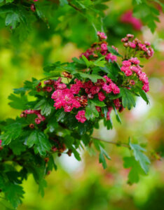 Son feuillage caduc, d’un vert brillant, ajoute une élégance discrète au printemps. À l’automne, ses feuilles virent à des teintes chaudes de jaune avant de tomber. Après la floraison, l’aubépine produit de petites baies rouge vif qui décorent l’arbre en fin de saison et attirent les oiseaux.
