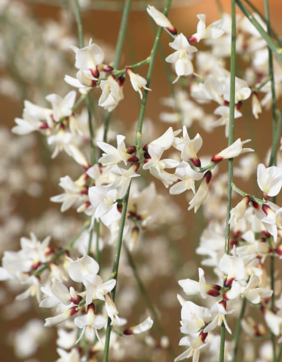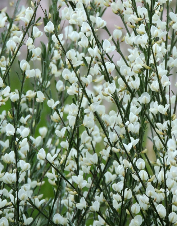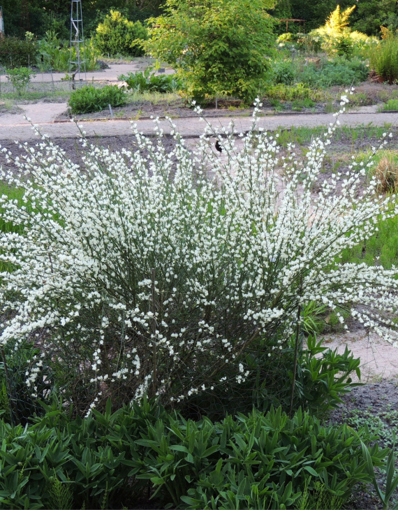 Le Cytisus praecox ‘Albus’, ou genêt précoce blanc, est un arbuste ornemental apprécié pour sa floraison printanière abondante et lumineuse. Dès avril, il se couvre de fleurs blanc pur, regroupées en grappes élégantes qui dégagent un charme délicat et apportent une touche lumineuse aux jardins. Cette floraison précoce attire également les pollinisateurs.
