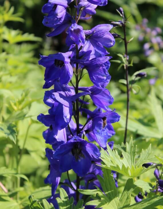 Une floraison somptueuse et contrastée pour Delphinium Black Knight