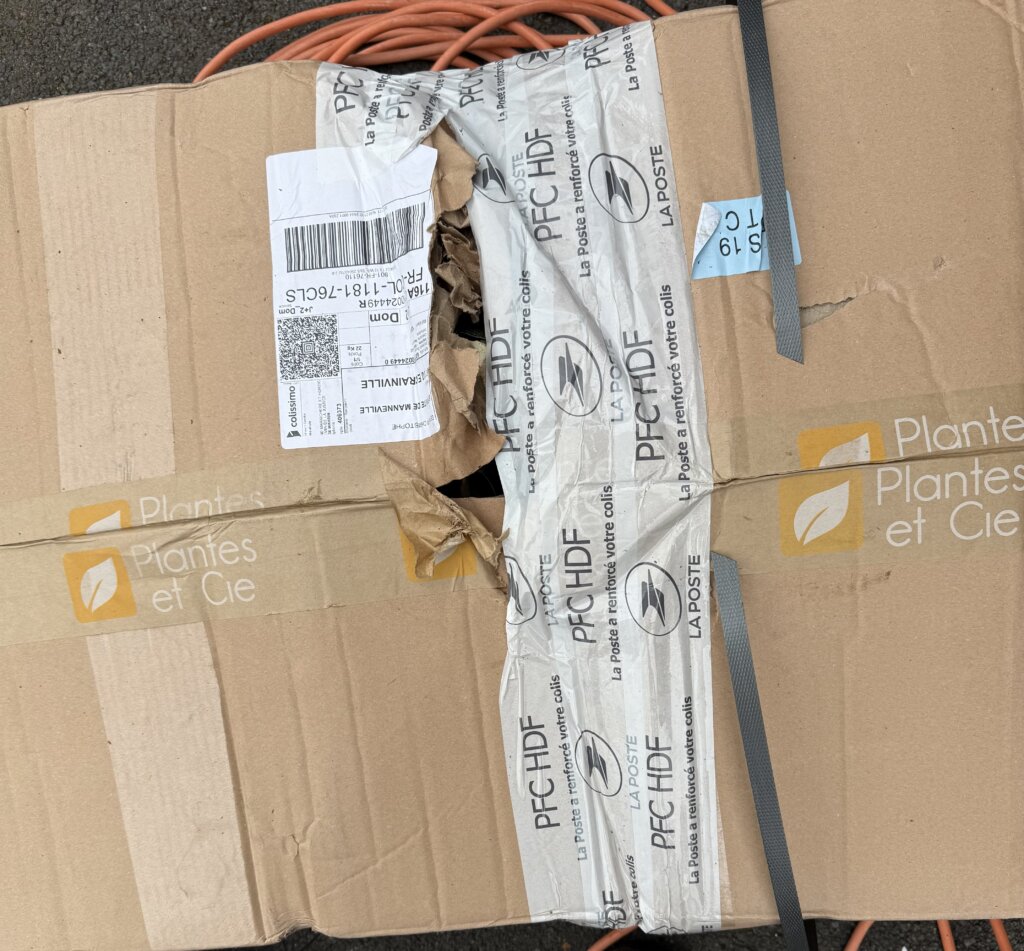 Nous sommes navrés pour cet incident. Nos cartons sont choisi en fonction du poids de l’envoi, ici du carton double cannelure. Toutefois il semblerait que votre colis est été malmené lors du transport. Notre service client reste à votre écoute si besoin.
