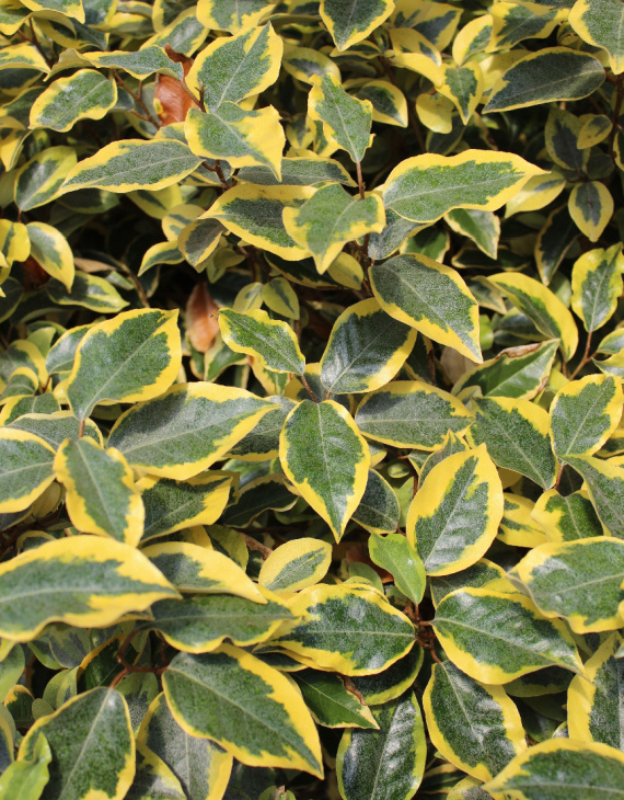 - Type de feuillage : Persistant, vert foncé bordé de jaune doré.