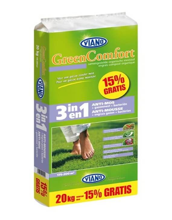 Ce fertilisant trois-en-un combine nutrition, régénération du sol et prévention de la mousse. Grâce à sa composition équilibrée et à sa libération lente, il assure un effet visible et durable, sans risque de brûlure. L’Engrais gazon GreenComfort 3 en 1 – NPK 6-3-5 Viano est idéal pour obtenir un gazon fort, sain et uniformément vert tout au long de la saison.