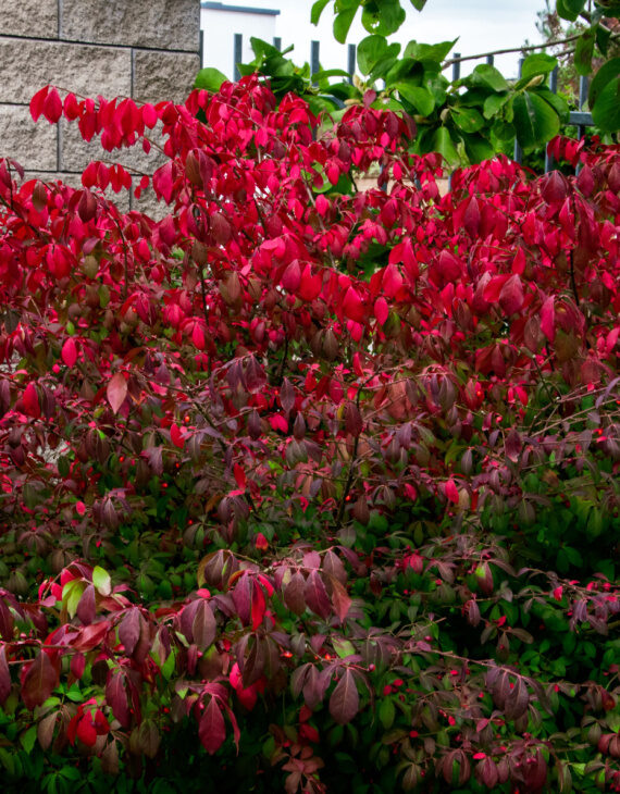 L’Euonymus alatus, ou Fusain ailé, est un arbuste caduc particulièrement apprécié pour ses couleurs automnales spectaculaires et son allure unique. Durant la majeure partie de l’année, il arbore un feuillage vert sombre et élégant, mais à l’automne, ses feuilles se parent de teintes flamboyantes allant du rouge écarlate au pourpre intense. Ce feuillage automnal spectaculaire fait de l’Euonymus alatus un choix incontournable pour illuminer les jardins avant l’arrivée de l’hiver.