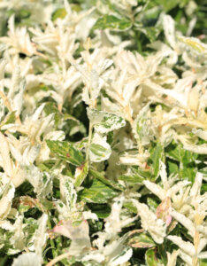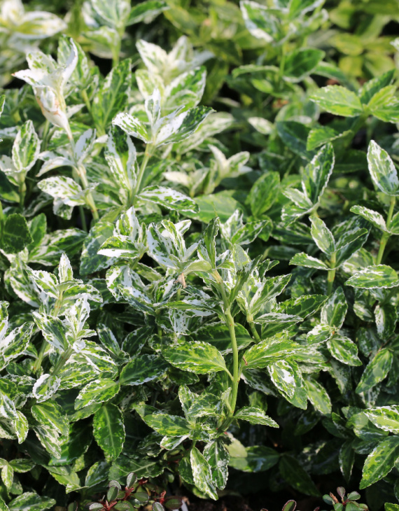 Le Euonymus fortunei ‘Harlequin’, aussi appelé fusain marbré, est une plante vivace au feuillage persistant remarquable pour ses motifs originaux. Ses petites feuilles ovales sont panachées de blanc crème et de vert tendre, créant un effet marbré unique qui attire immédiatement l’œil. Compact et robuste, ce cultivar est parfait pour illuminer les massifs, les bordures ou les jardinières. Son feuillage peut également prendre des reflets rosés en hiver, apportant une touche saisonnière supplémentaire.
