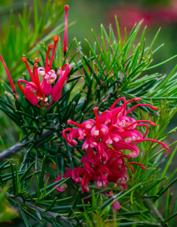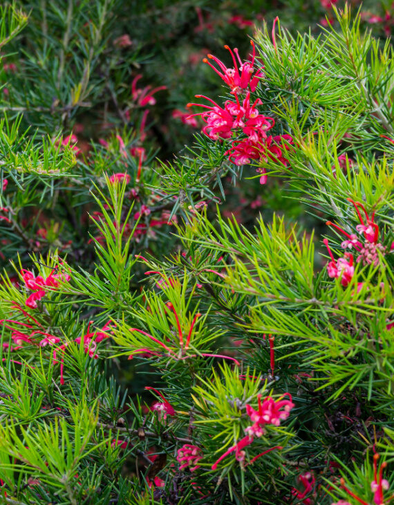 Le Grevillea juniperina, ou Grevillea à feuilles de genévrier, est un arbuste persistant originaire d’Australie. Il séduit par son feuillage fin et épineux, rappelant celui du genévrier, et par sa floraison spectaculaire et prolongée. Avec ses fleurs tubulaires colorées, cet arbuste apporte une touche exotique et lumineuse aux jardins secs et ensoleillés.