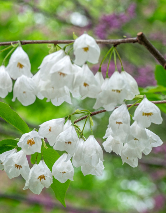 Le Halesia carolina, aussi appelé Arbre aux clochettes de Caroline, est un petit arbre ornemental apprécié pour sa floraison printanière abondante. Dès avril-mai, il se couvre de grappes de fleurs blanches en forme de clochettes, créant un effet spectaculaire. Son port gracieux et son feuillage léger en font un choix idéal pour les jardins naturels ou les aménagements en sous-bois.