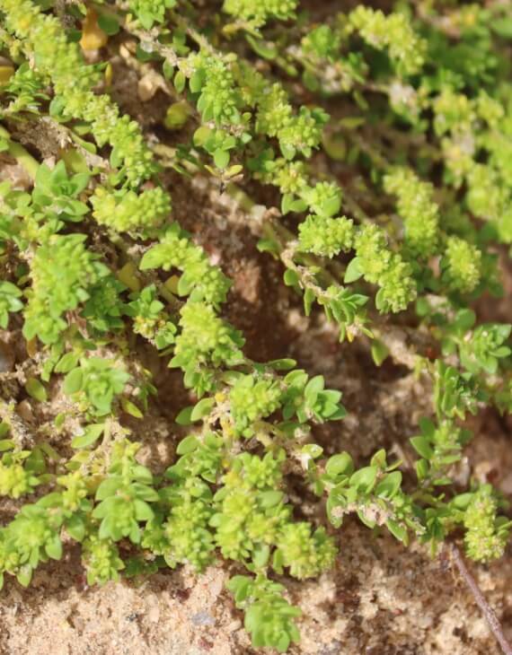 L’Herniaria glabra se distingue par sa croissance très étalée mais basse, rarement au-delà de 5 à 10 cm de hauteur. Elle produit de minuscules feuilles ovales et opposées, d’un vert frais, qui restent souvent persistantes dans les climats doux. La floraison, bien que peu spectaculaire, survient de mai à août sous forme de toutes petites fleurs verdâtres, quasiment invisibles, mais appréciées des insectes pollinisateurs.
