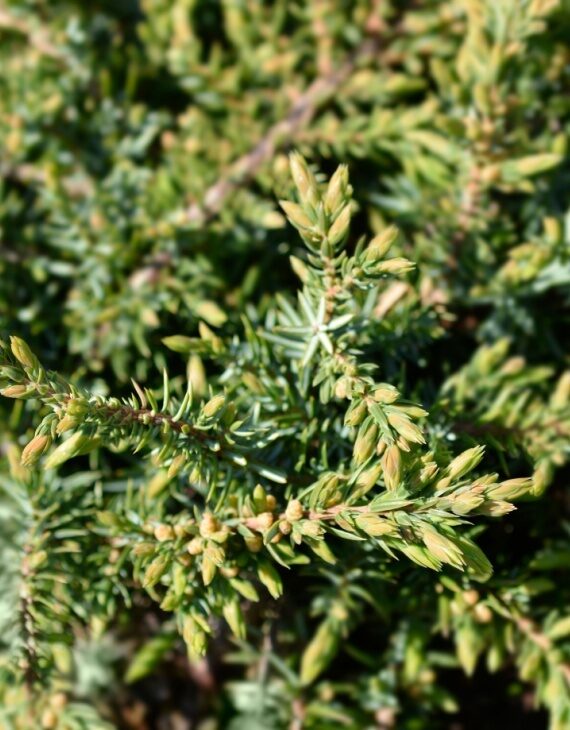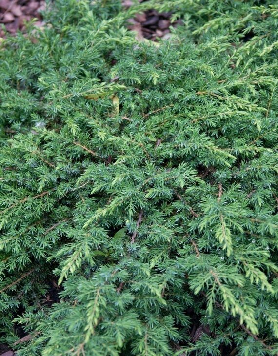 Ce cultivar de genévrier commun offre un port bas et étalé, atteignant environ 30 cm de hauteur pour une largeur pouvant aller jusqu’à 2 mètres à maturité. Son feuillage fin, en aiguilles vert intense légèrement bleuté, reste décoratif tout au long de l’année. Il crée ainsi un effet tapis très graphique, notamment en association avec des pierres, des graviers ou d’autres plantes de rocaille.