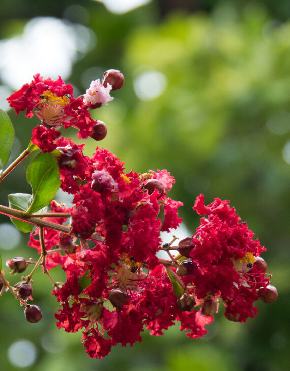 Lagerstroemia indica ‘Dynamite’ : une floraison spectaculaire et prolongée