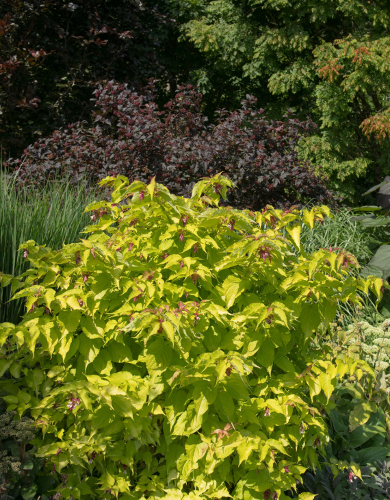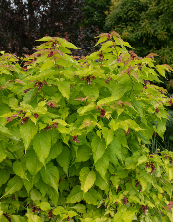 Grâce à son port souple et buissonnant, le Leycesteria formosa ‘Golden Lanterns’ s’intègre bien dans les jardins naturels et champêtres. Il peut être planté en isolé pour créer un point focal lumineux. En massif, il contraste avec des feuillages verts. En haie libre, il structure l’espace tout en conservant un aspect naturel. Associé à des vivaces ou arbustes à floraison estivale, il apporte de la légèreté et du mouvement.