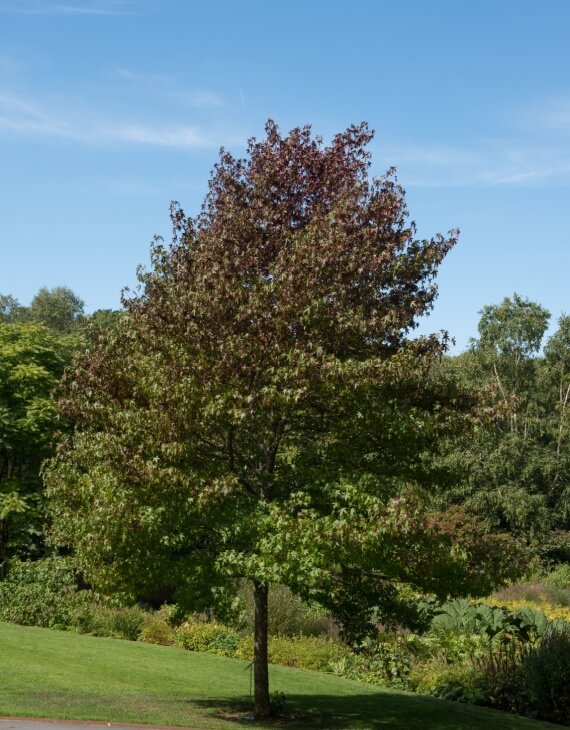 Au printemps, le feuillage palmée apparaît progressivement. Les feuilles affichent un vert brillant et lumineux. Ensuite, durant l’été, la ramure devient dense et apporte une ombre légère. Puis, à l’automne, le Liquidambar styraciflua ‘Worplesdon’ révèle tout son potentiel décoratif. Le feuillage se transforme en un mélange spectaculaire de jaune, d’orange, de rouge et de pourpre. Cette coloration intense et durable en fait l’un des arbres les plus décoratifs de la saison.