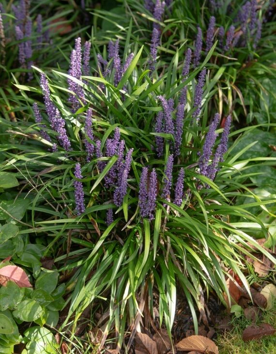 Le Liriope muscari Big Blue séduit par son port touffu et dense. Ses longues feuilles rubanées, d’un vert intense, rappellent celles des graminées et apportent texture et mouvement au jardin. Dès la fin de l’été, il se pare d’épis dressés garnis de petites fleurs violettes à bleu lavande, évoquant des grappes de muscari, d’où son nom. Ces épis floraux assurent un effet graphique marqué dans les massifs, même en arrière-saison.