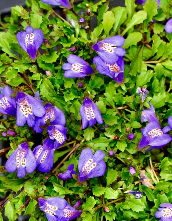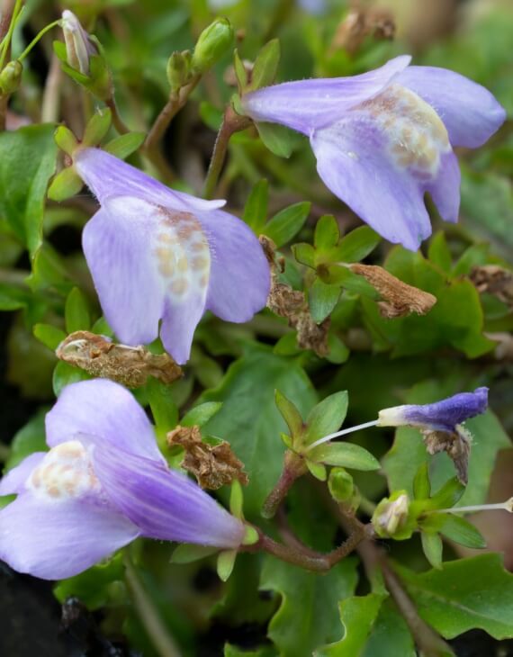 Au printemps et jusqu’au début de l’été, de petites fleurs tubulaires apparaissent en abondance. De couleur mauve à bleu violacé, elles sont souvent marquées de jaune et de blanc, ce qui ajoute un contraste charmant. La floraison, bien que discrète en taille, est remarquable par sa densité et sa durée.