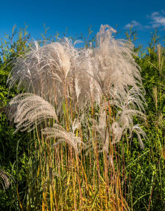 Miscanthus Giganteus se distingue par ses longues feuilles arquées et souples, d’un vert vif qui vire au brun en automne. Ses épis argentés apparaissent à la fin de l’été, ajoutant une touche élégante et lumineuse. Très rustique, cette graminée s’adapte à divers climats et types de sols, bien qu’elle préfère les terres riches et bien drainées.