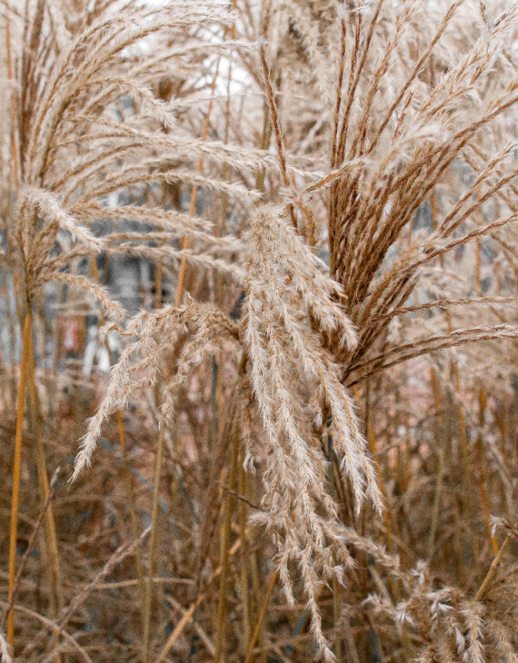 Le Miscanthus sinensis ‘Ferner Osten’ forme une touffe dense et érigée de feuilles longues et fines, d’un vert lumineux en été. Dès l’automne, son feuillage se teinte de nuances rougeâtres et cuivrées, ajoutant une touche de chaleur au jardin. À partir de la fin de l’été, des inflorescences plumeuses rouge pourpre émergent au sommet des tiges, atteignant une hauteur de 1,5 à 2 m. Ces plumets prennent progressivement des teintes argentées en mûrissant, offrant un spectacle évolutif jusqu’à l’hiver.
