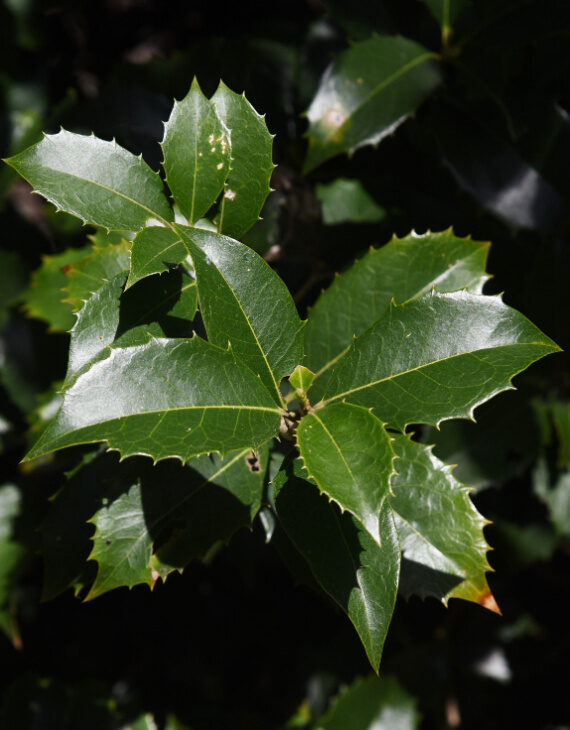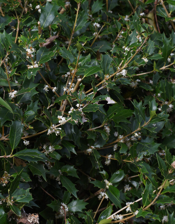 Le Osmanthus heterophyllus, également appelé Osmanthe à feuilles de houx, est un arbuste persistant apprécié pour son feuillage dense et sa floraison parfumée. Ses feuilles brillantes, dentelées et semblables à celles du houx, ajoutent de la structure aux massifs, haies et bordures. À l’automne, de petites fleurs blanches très parfumées apparaissent, diffusant un agréable parfum sucré.