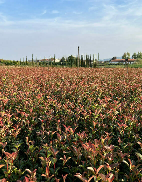 Le Photinia × fraseri ‘Carré Rouge’ est un arbuste persistant au feuillage spectaculaire. Ses jeunes pousses rouges vives contrastent magnifiquement avec le vert foncé des feuilles matures. Compact et dense, il apporte de la couleur toute l’année et s’intègre parfaitement dans les haies, massifs ou comme plante isolée.