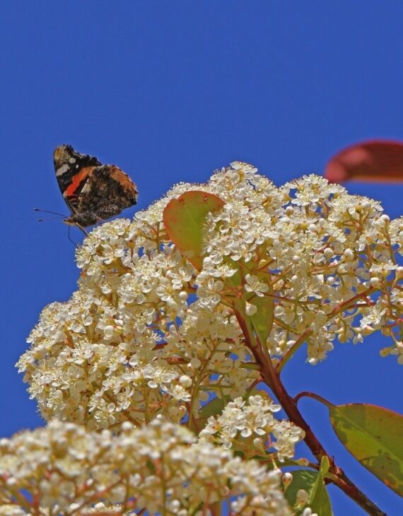 Au printemps, il se pare de petites fleurs blanches regroupées en panicules, qui attirent les pollinisateurs. Avec une croissance rapide, cet arbuste atteint jusqu’à 3 m de hauteur et 2 m de largeur. Il est idéal pour les petits jardins ou les haies basses. Il tolère très bien les tailles répétées, ce qui stimule l’apparition des nouvelles pousses rouges. Les jeunes pousses rouges délicates deviennent progressivement vert foncé et robustes au fil de la saison.