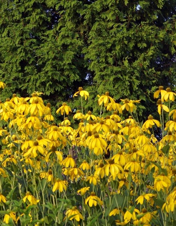 Facile à cultiver, cette rudbeckie vivace tolère la sécheresse une fois bien installée, mais préfère les sols riches, frais à humides. Elle s’adapte aussi bien en pleine terre qu’en grand bac, dans des jardins naturalistes, des massifs champêtres ou en association avec des graminées. La Rudbeckia nitida Herbstsonne est également idéale pour les fleurs coupées, grâce à ses longues tiges robustes et ses inflorescences durables.