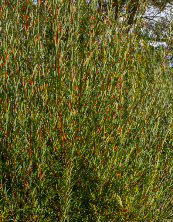 Le Salix purpurea, ou saule pourpre, est un arbuste caduc prisé pour ses rameaux élancés d’une teinte rouge-pourpre qui illuminent le jardin en hiver. Son feuillage fin, gris-vert à bleuâtre, complète parfaitement son allure élégante. Cet arbuste buissonnant, compact et rapide à pousser, est idéal pour structurer les haies libres, stabiliser les berges ou orner les jardins naturels.