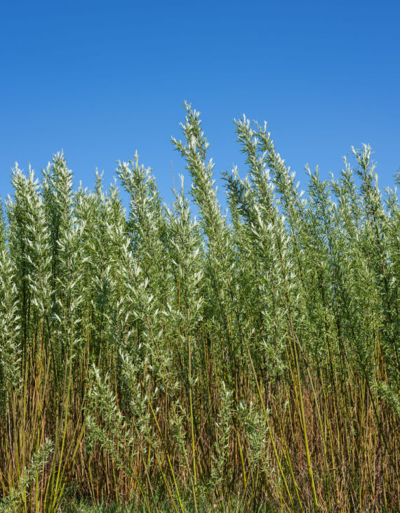 Le Salix viminalis, ou saule des vanniers, est un arbuste ou petit arbre caduc apprécié pour ses longues tiges flexibles et son feuillage étroit, vert argenté. Traditionnellement utilisé en vannerie, ce saule au port buissonnant et vigoureux s’intègre aussi parfaitement dans les jardins naturels ou en bordure de plans d’eau. Ses branches élancées, faciles à tailler, en font un choix idéal pour créer des haies, des écrans ou des structures vivantes comme des tonnelles ou des plessis.