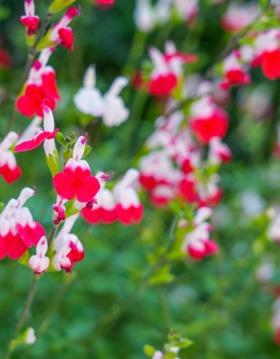 Ce cultivar se distingue par ses fleurs tubulaires bicolores : une lèvre supérieure blanche éclatante et une lèvre inférieure rouge vif, évoquant de petites lèvres maquillées, d’où son nom. En fonction des températures, certaines fleurs peuvent même être entièrement blanches ou rouges, créant un effet toujours renouvelé. La Salvia Hot Lips fleurit de mai à octobre, attirant abeilles, papillons et autres pollinisateurs, ce qui en fait une plante mellifère de choix pour les jardins naturels.
