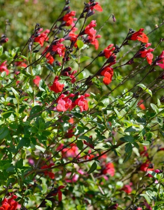 La Salvia microphylla Royal Bumble, aussi appelée Sauge de Graham, est une vivace arbustive originaire du Mexique, connue pour sa floraison spectaculaire et prolongée. Elle illumine le jardin de ses fleurs d’un rouge vif intense, presque incandescent, du printemps jusqu’aux premières gelées. Cette variété se distingue par son port compact, son feuillage aromatique et sa capacité à attirer abeilles, papillons et autres pollinisateurs. Idéale pour les jardins ensoleillés, cette sauge séduit par sa robustesse et son faible entretien.