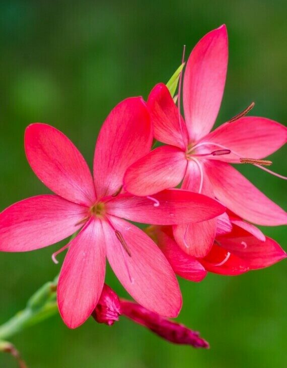 Le principal atout de la Schizostylis coccinea réside dans sa floraison tardive, entre septembre et décembre. Ses fleurs étoilées, portées par des tiges dressées de 40 à 60 cm, rappellent celles du glaïeul, en plus délicates. Déclinées dans des teintes éclatantes – rouge écarlate, rose ou blanc selon les cultivars – elles illuminent les massifs à une période où la majorité des vivaces ont déjà fané. La Schizostylis coccinea est donc idéale pour prolonger l’intérêt ornemental du jardin.