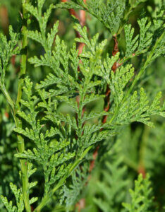Le Thuja plicata ‘Atrovirens’, ou Thuya géant Atrovirens, est un conifère persistant idéal pour les haies hautes et occultantes. Son feuillage dense et fin, d’un vert foncé brillant, dégage un agréable parfum de résine lorsqu’on le froisse. Vigoureux et rapide, il permet de former rapidement un écran végétal efficace contre le vent et les regards indiscrets.
