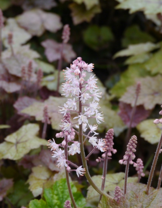 Dès le printemps et jusqu’au début de l’été, la Tiarella wherryi produit de gracieux épis de fleurs étoilées, variant du blanc au rose pâle, qui attirent les pollinisateurs. Son port légèrement étalé en fait un excellent couvre-sol pour les massifs ombragés, les bordures ou les rocailles fraîches. Elle se marie parfaitement avec les fougères, hostas et heuchères, créant ainsi des compositions harmonieuses et naturelles.