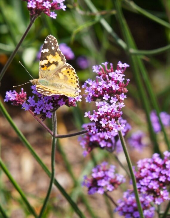 Dès le début de l’été et jusqu’aux premières gelées, la Verbena bonariensis Lollipop offre une floraison généreuse sous forme de petites inflorescences sphériques d’un mauve éclatant. Ses fleurs attirent une multitude de pollinisateurs, notamment les papillons et les abeilles, ce qui en fait une plante idéale pour un jardin naturel et vivant. Son port léger et vaporeux lui permet de s’intégrer harmonieusement dans les massifs tout en laissant transparaître les plantes situées à l’arrière.